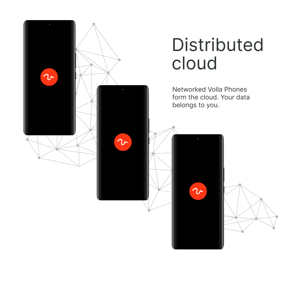 Die optionale Volla Cloud gibt den Anwendern die Macht wieder zurück. Ihre Daten gehören Ihnen. Punkt. Denn die Volla Cloud kommt ganz ohne Rechenzentrum aus. Statt dessen bilden vernetzte Volla Phones die Cloud. Sie entscheiden, mit wem Sie Daten hoch verschlüsselt teilen.